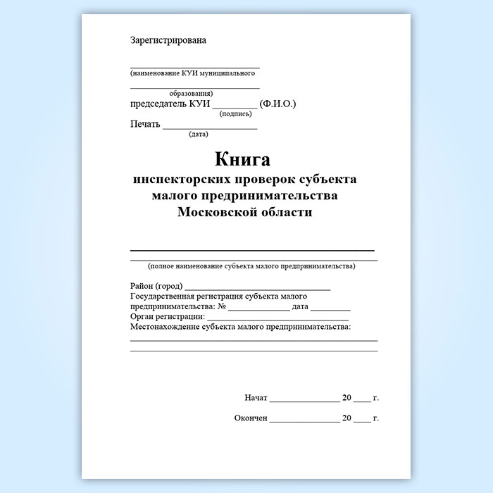 Книга инспекторских проверок субъекта малого предпринимательства Московской области в Твери купить