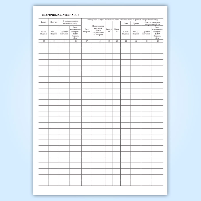 Журнал учета выдачи в производство и возврата неиспользованных сварочных материалов в Твери купить