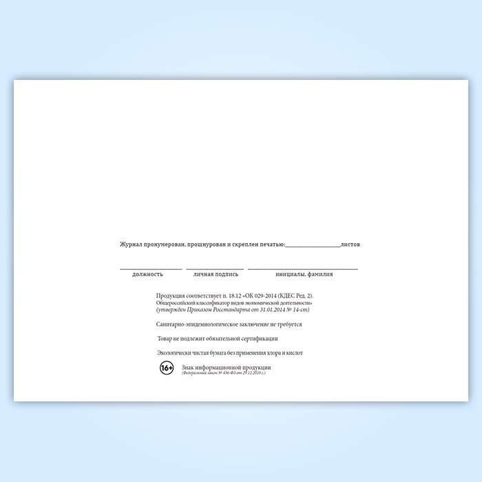 Вы получаете печатную продукцию прошнурованной и c местом для вашей печати в соответствии с действующими нормативными документами: