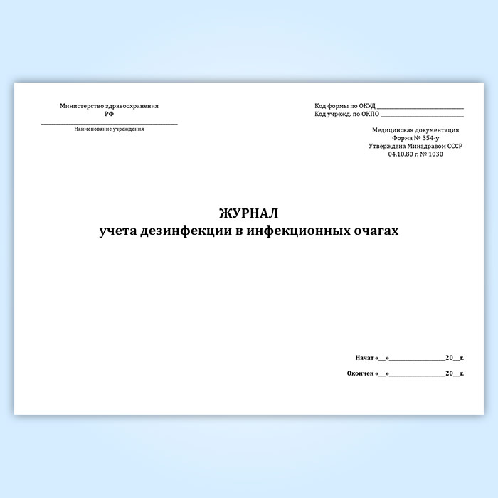 Журнал учета дезинфекции в инфекционных очагах (форма 354/у) в Твери купить