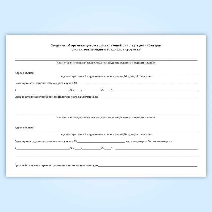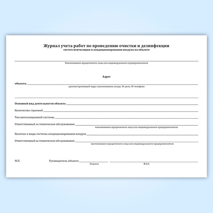 Журнал учета работ по проведению очистки и дезинфекции систем вентиляции и кондиционирования воздуха на объекте в Твери купить