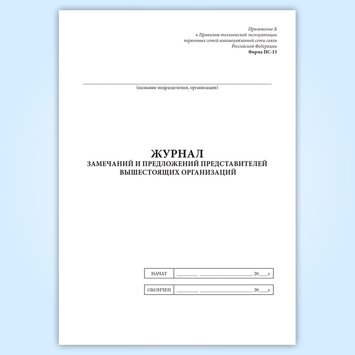 Журнал замечаний и предложений представителей вышестоящих организаций (форма ПС-13) в Твери купить