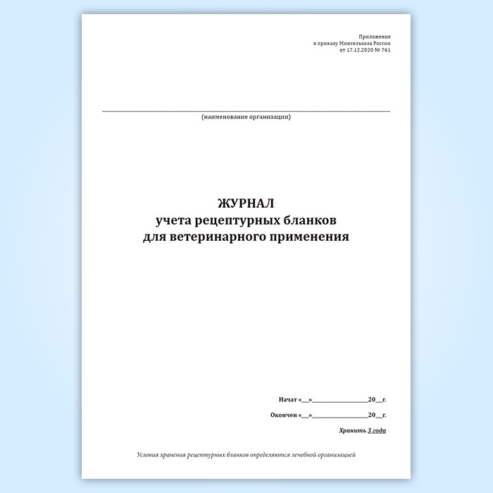 Журнал учета рецептурных бланков для ветеринарного применения в Твери купить