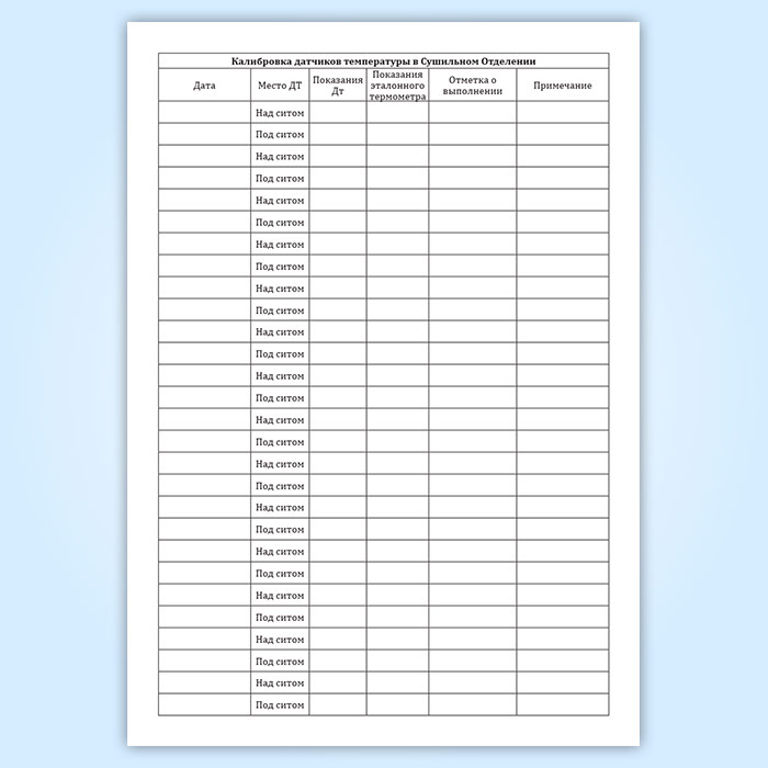 Журнал калибровки датчиков температуры в сушильном отделении в Твери купить