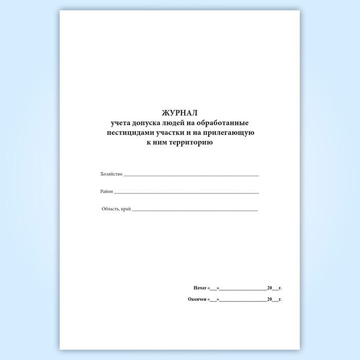 Журнал учета допуска людей на обработанные пестицидами участки и на прилегающую к ним территорию в Твери купить