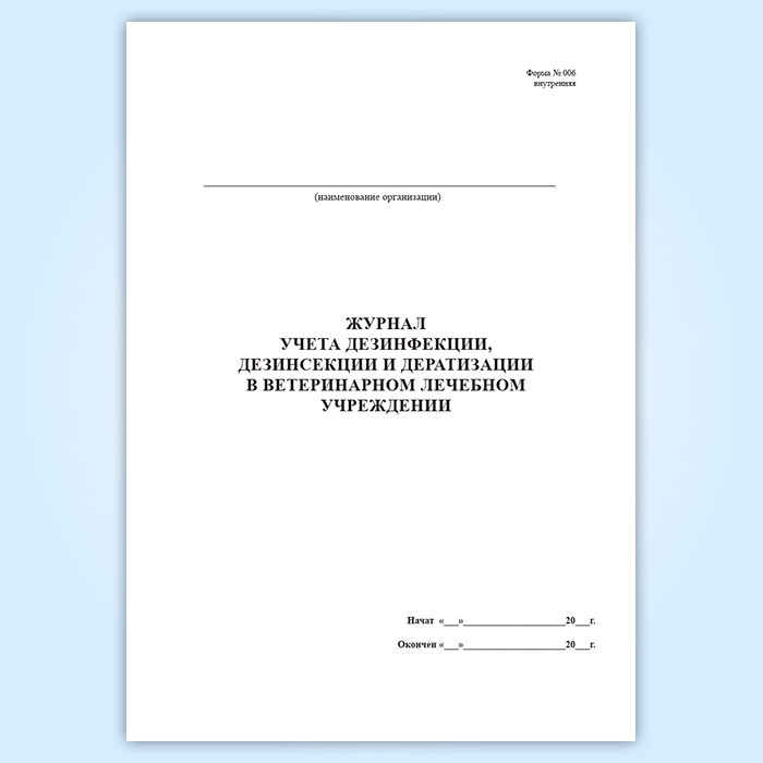 Журнал учета дезинфекции ветеринарного лечебного подразделения (форма № 006 вн.) в Твери купить