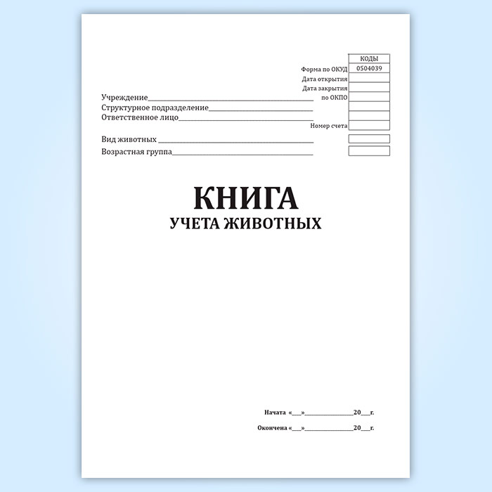 Книга учета животных (форма 0504039) в Твери купить