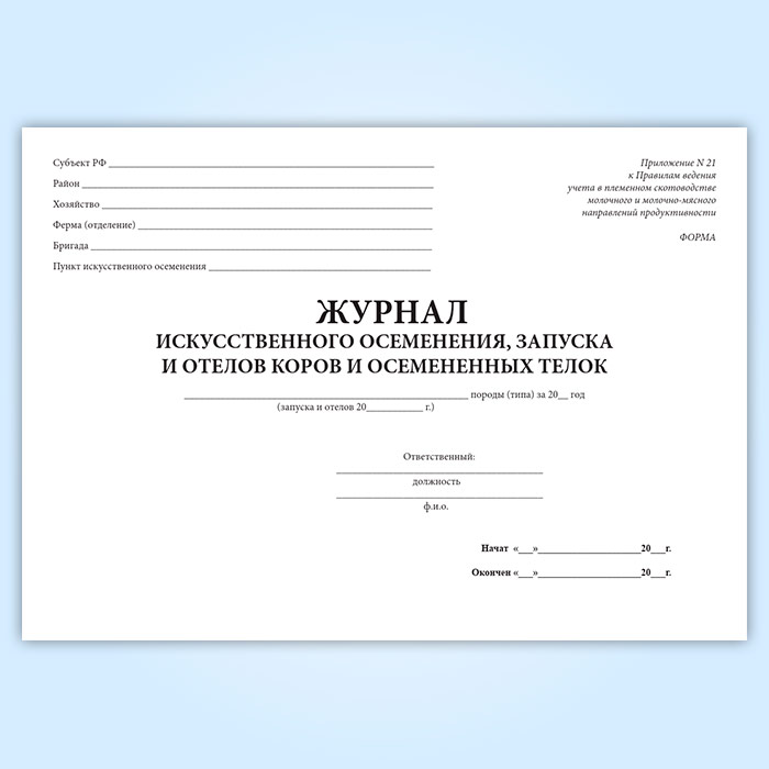 Журнал искусственного осеменения, запуска и отелов коров и осемененных телок в Твери купить