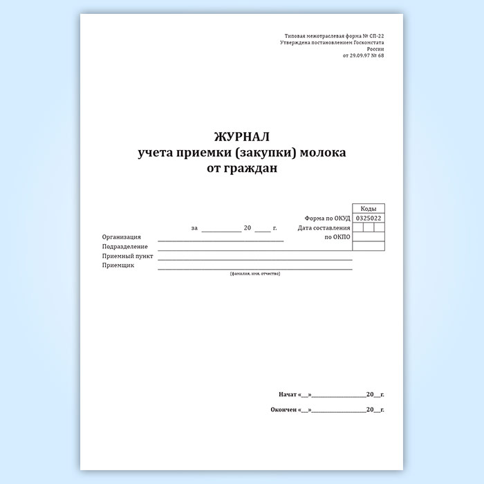 Журнал учета приемки (закупки) молока от граждан (форма СП-22) в Твери купить