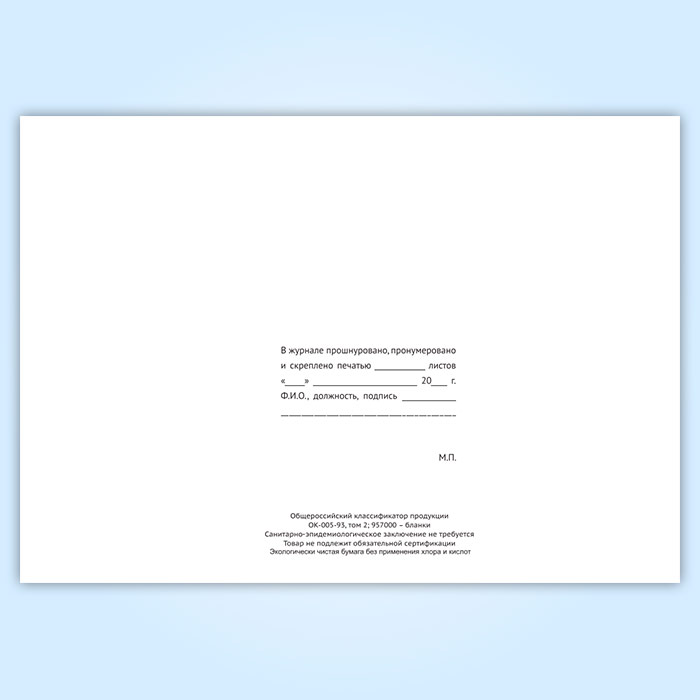 Вы получаете печатную продукцию прошнурованной и c местом для вашей печати в соответствии с действующими нормативными документами: