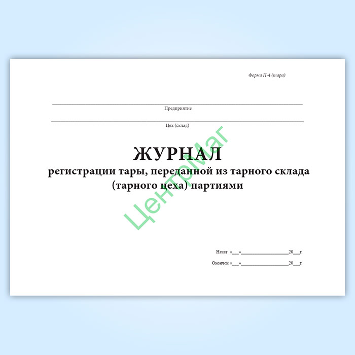 Журнал регистрации тары, переданной из тарного склада (тарного цеха) партиями (форма № П-4 тара) в Твери купить