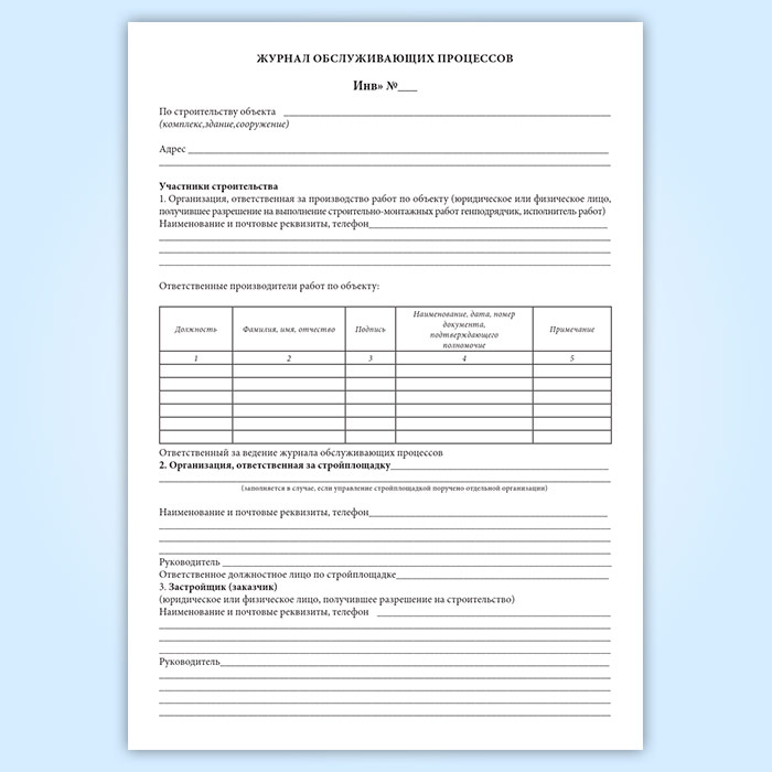 Журнал обслуживающих процессов по объекту в Твери купить
