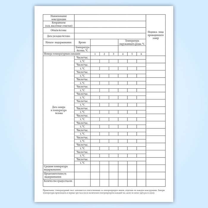 Журнал регистрации температуры бетона в монолитных конструкциях в Твери купить