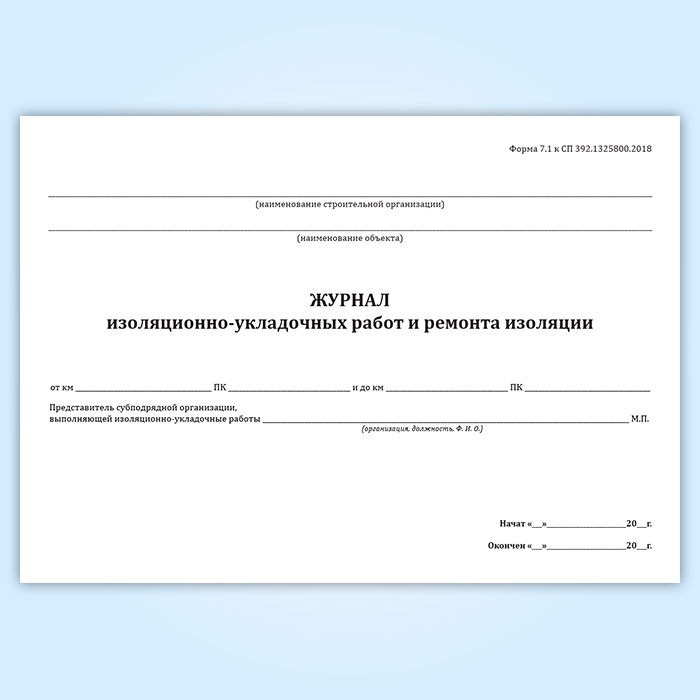 Журнал изоляционно-укладочных работ и ремонта изоляции (форма 7.1) в Твери купить