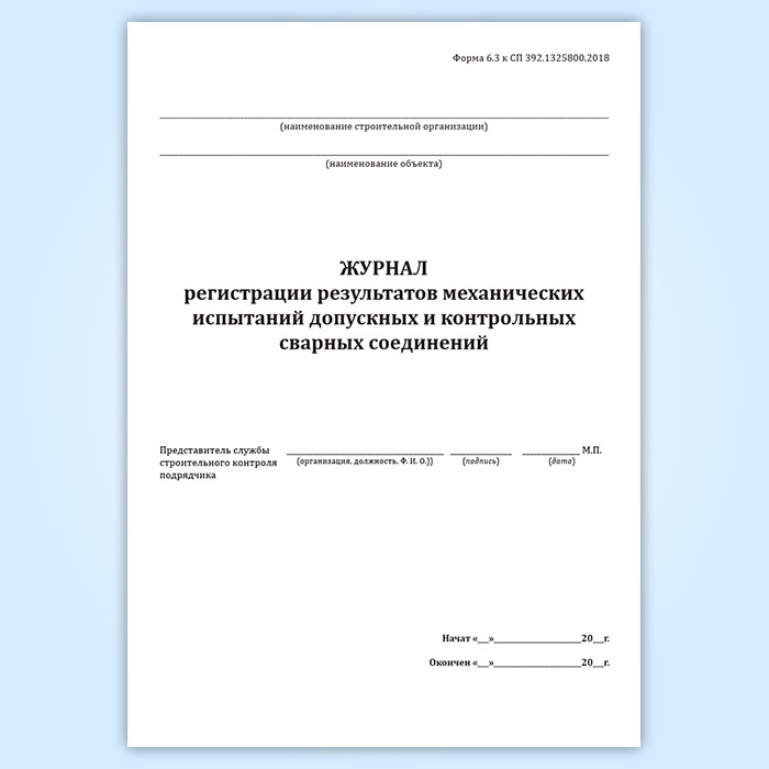 Журнал регистрации результатов механических испытаний допускных и контрольных сварных соединений (форма 6.3) в Твери купить