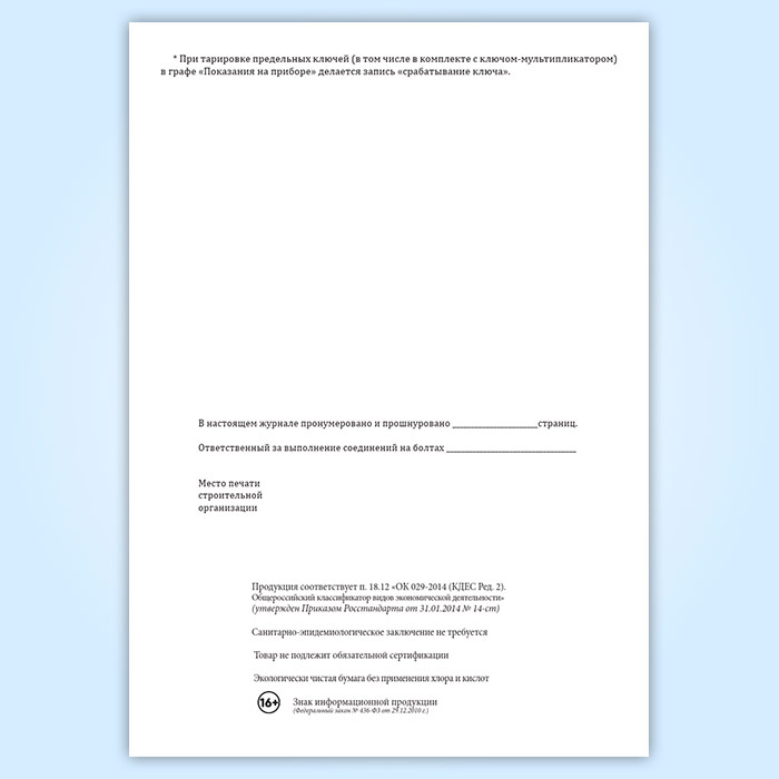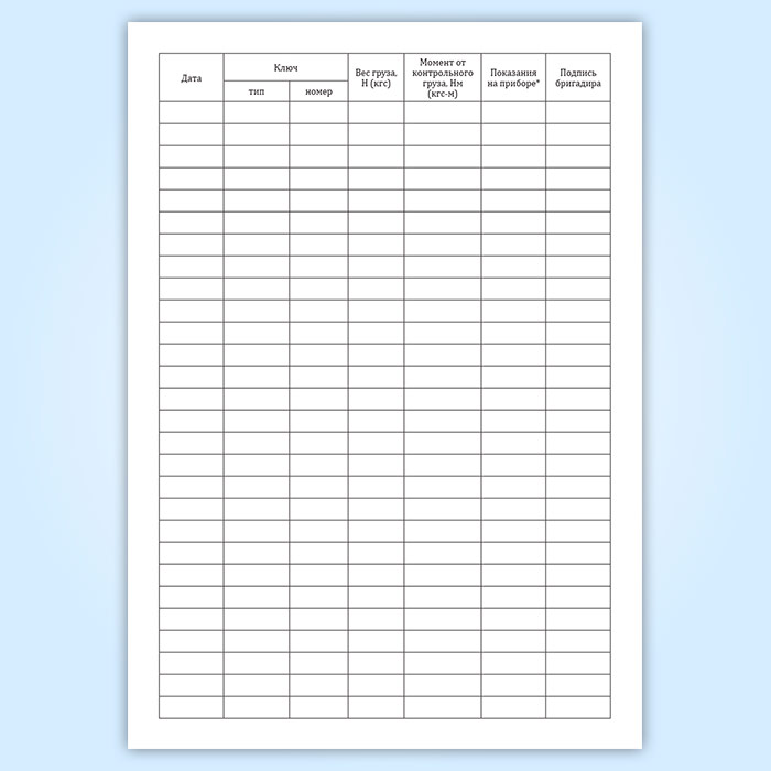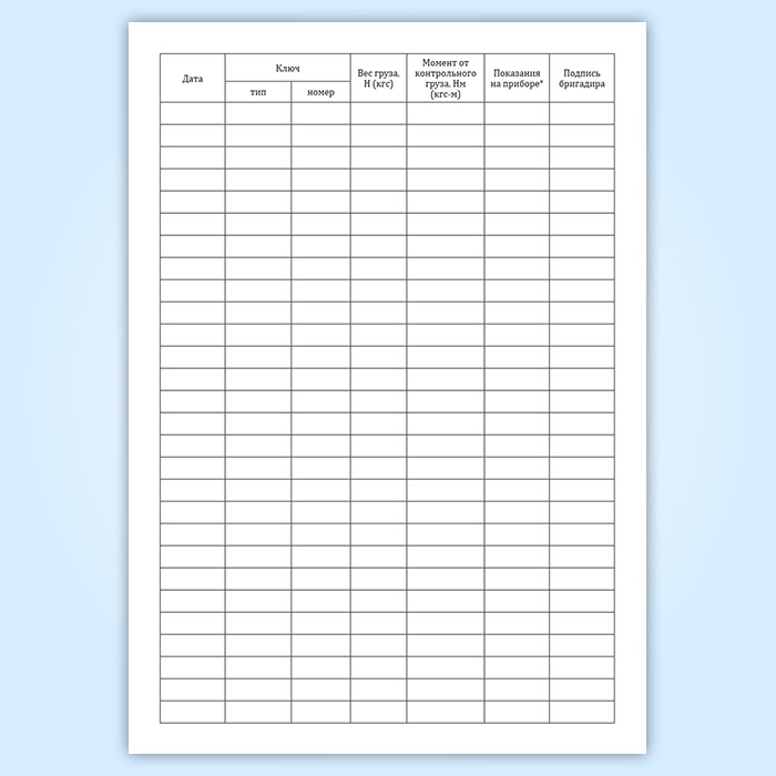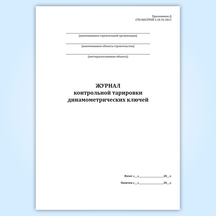 Журнал контрольной тарировки динамометрических ключей (СТО НОСТРОЙ 2.10.76-2012) в Твери купить