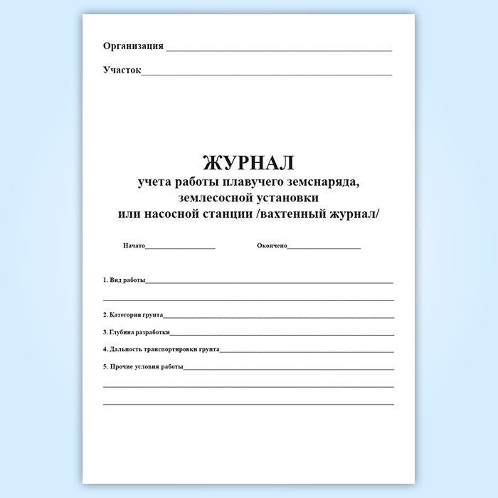Журнал учета работы плавучего земснаряда, землесосной установки или насосной станции (вахтенный журнал) (форма ПД-3) в Твери купить