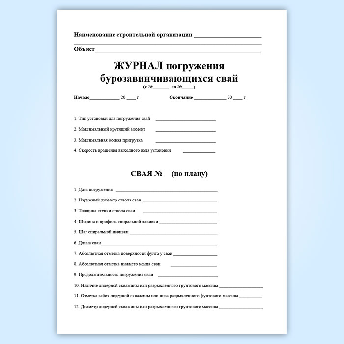 Журнал погружения бурозавинчивающихся свай в Твери купить
