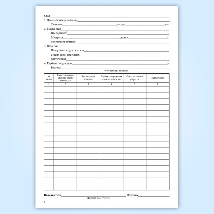 Журнал погружения свай (свай-оболочек) в Твери купить