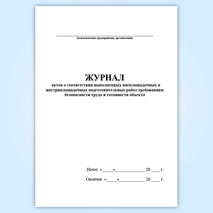 Журнал актов о соответствии выполненных внеплощадочных и внутриплощадочных подготовительных работ требованиям безопасности труда и готовности объекта в Твери купить