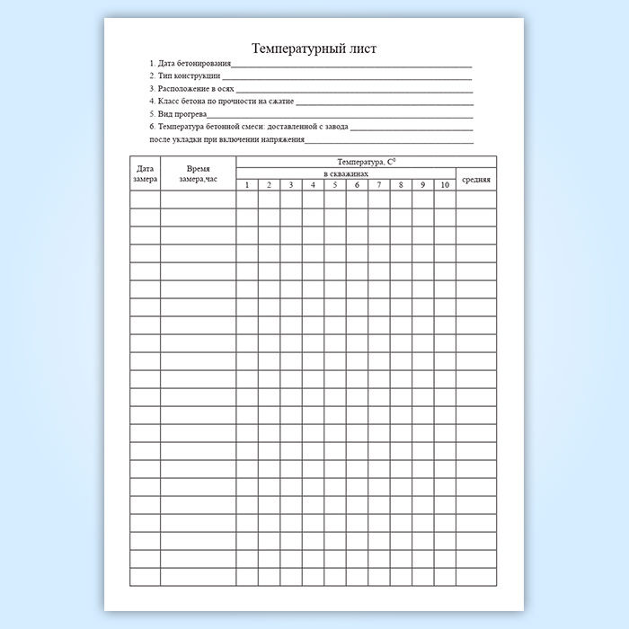 Журнал ухода за бетоном (с графиком продолжительности твердения) в Твери купить
