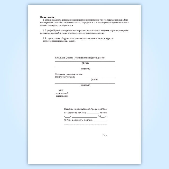 Журнал погружения свай в Твери купить