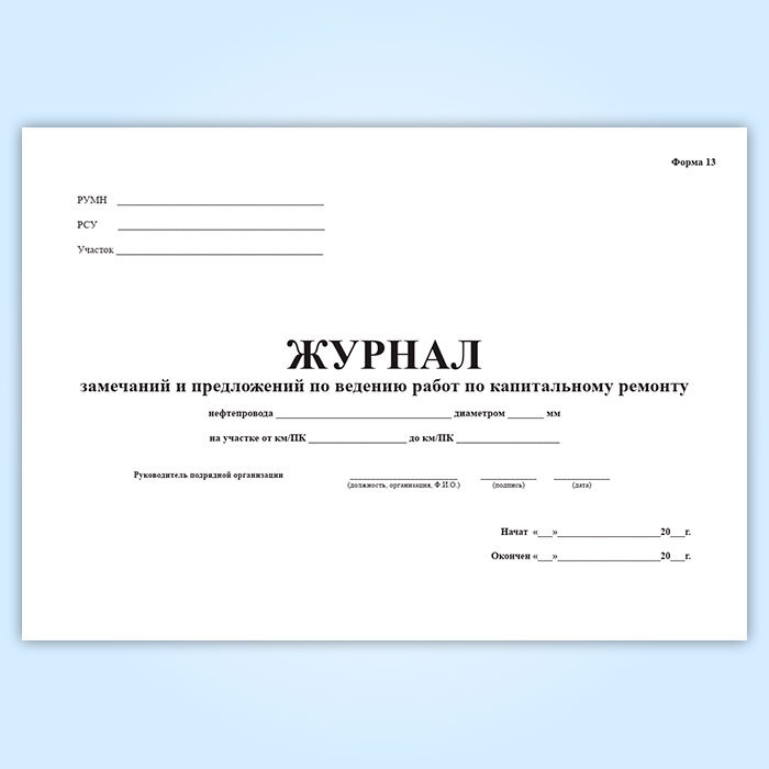 Журнал замечаний и предложений по ведению работ по капитальному ремонту в Твери купить