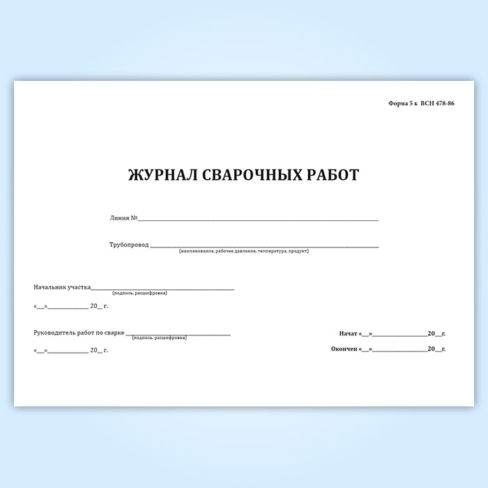 Журнал сварочных работ (ВСН 478-86) в Твери купить