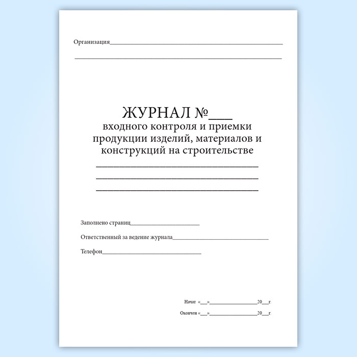 Журнал входного контроля и приемки продукции, изделий, материалов и конструкций на строительстве в Твери купить