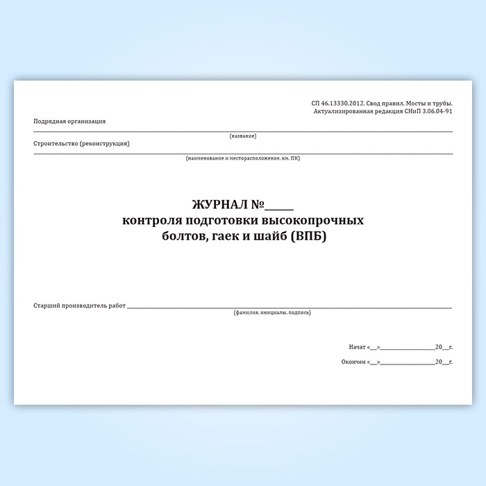 Журнал контроля подготовки высокопрочных болтов, гаек и шайб в Твери купить
