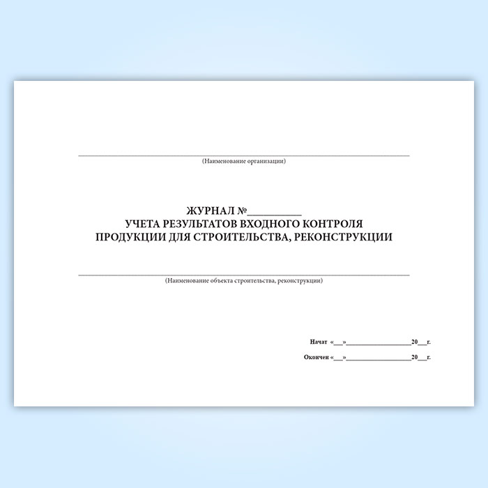 Журнал учета результатов входного контроля продукции для строительства, реконструкции в Твери купить