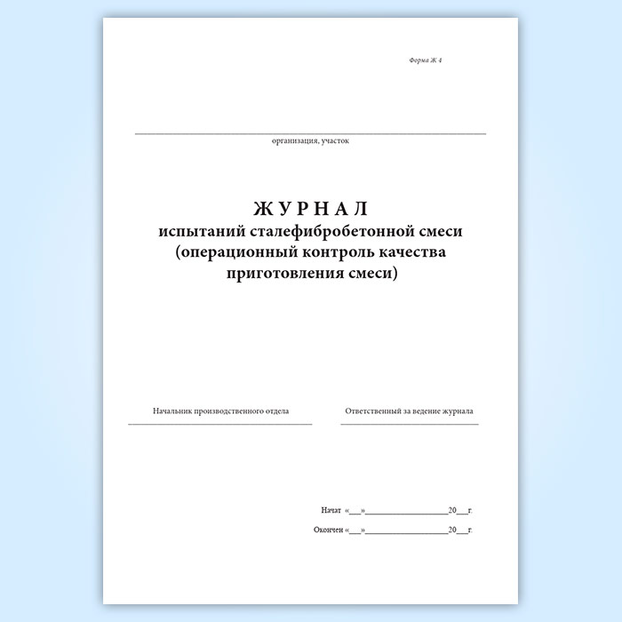 Журнал испытаний сталефибробетонной смеси (операционный контроль качества приготовления смеси) (форма Ж 4) в Твери купить