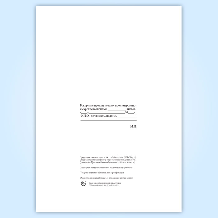 Вы получаете печатную продукцию прошнурованной и c местом для вашей печати в соответствии с действующими нормативными документами: