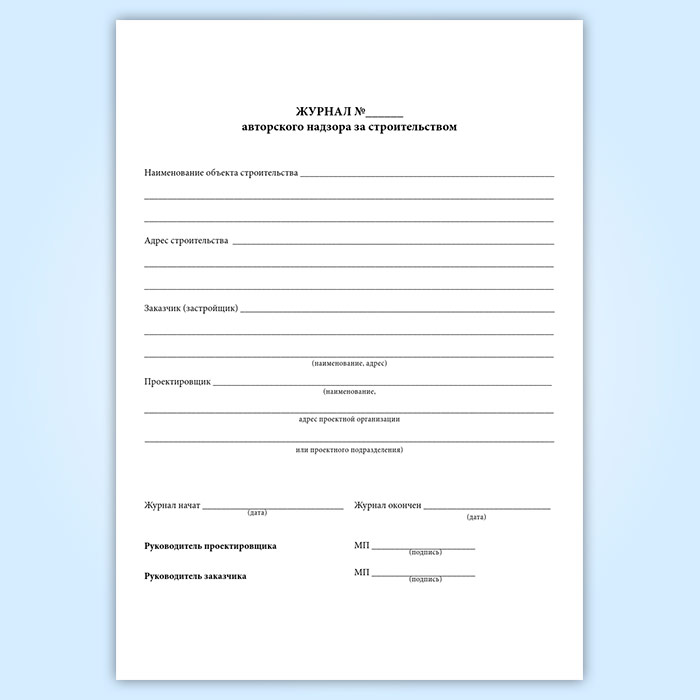 Журнал авторского надзора за строительством (СП 246.1325800.2016) в Твери купить