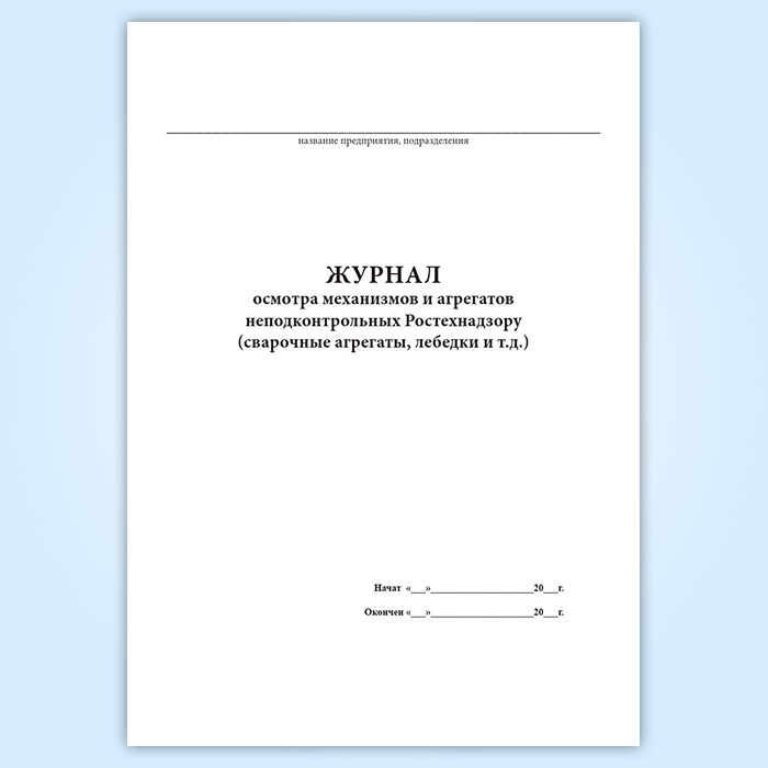 Журнал осмотра механизмов и агрегатов неподконтрольных Ростехнадзору в Твери купить