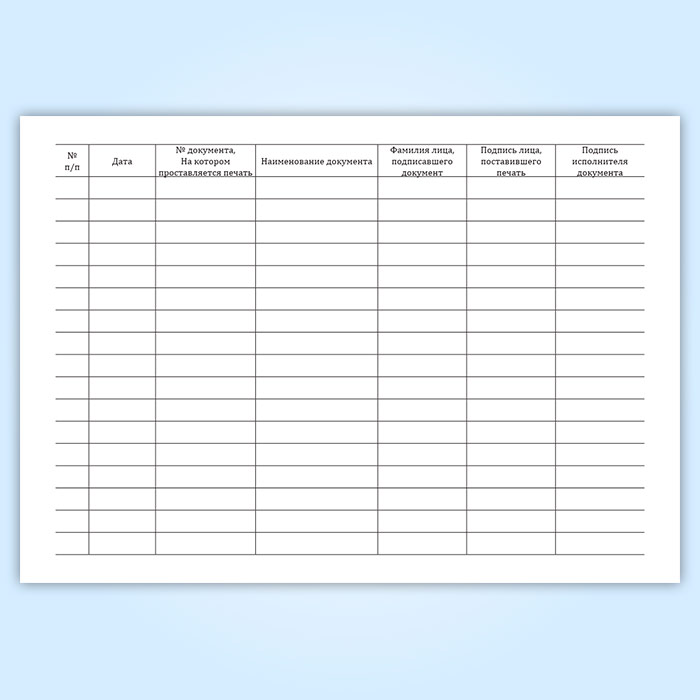 Вы получаете печатную продукцию прошнурованной и c местом для вашей печати в соответствии с действующими нормативными документами: