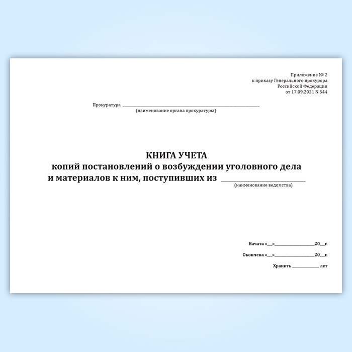 Книга учета копий постановлений о возбуждении уголовного дела и материалов к ним в Твери купить