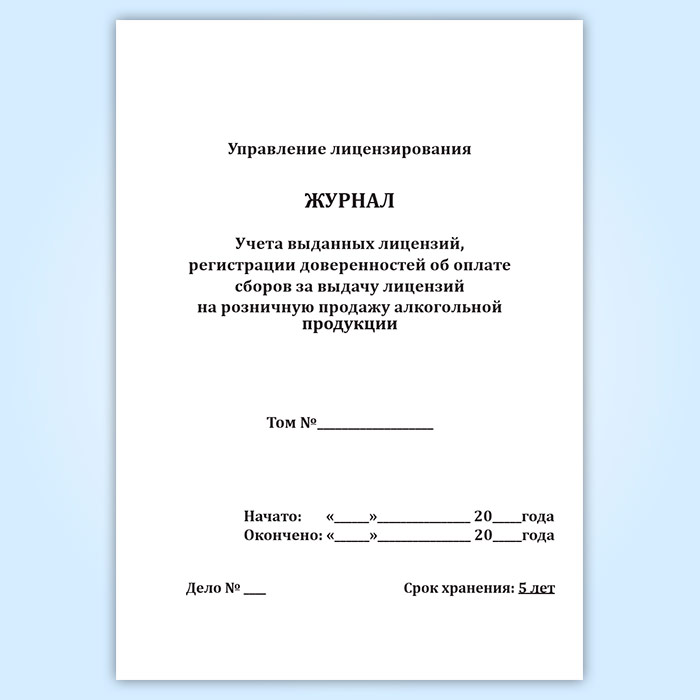 Журнал учета выданных лицензий, регистрации доверенностей об оплате сборов за выдачу лицензий на розничную продажу алкогольной продукции в Твери купить