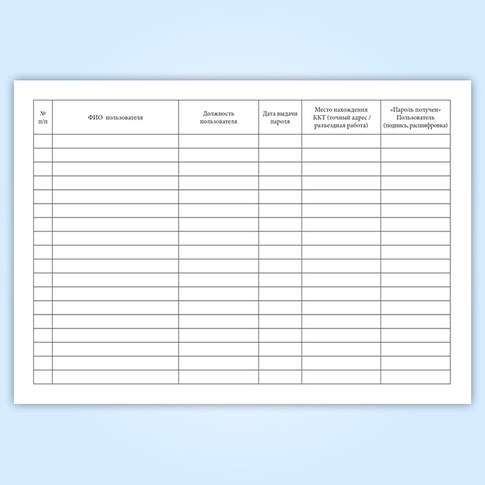 Журнал выдачи паролей для работы с контрольно-кассовой техникой (ККТ) в Твери купить