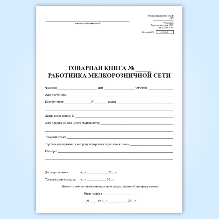 Товарная книга работника мелкорозничной сети. Специализированная (форма № 1-РТ) в Твери купить