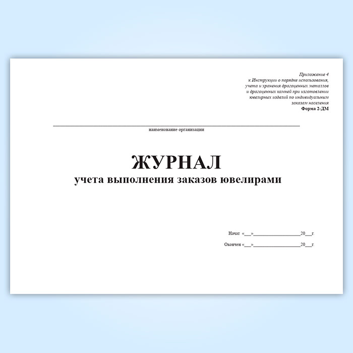 Журнал учета выполнения заказов ювелирами (форма 2-ДМ) в Твери купить