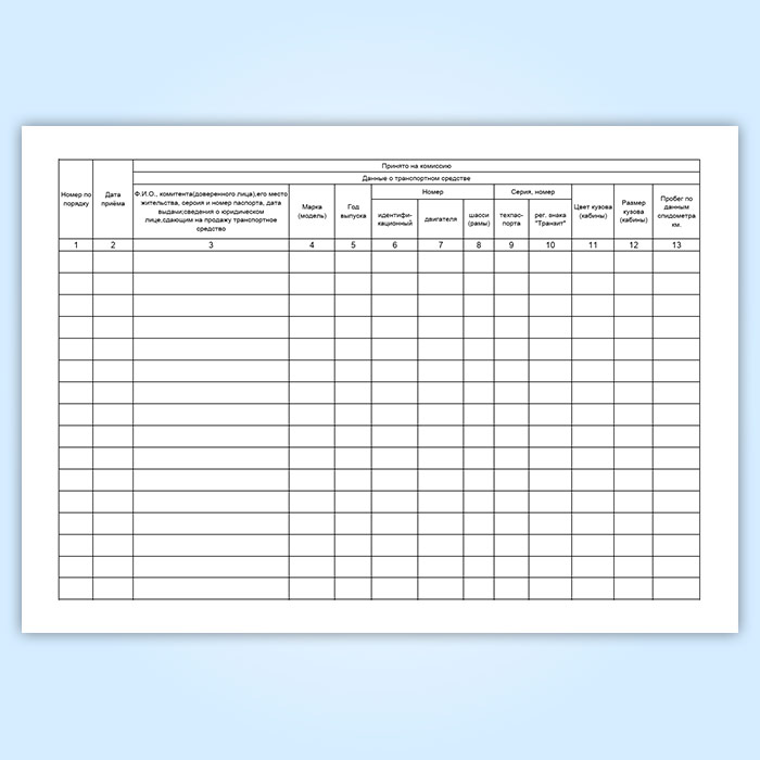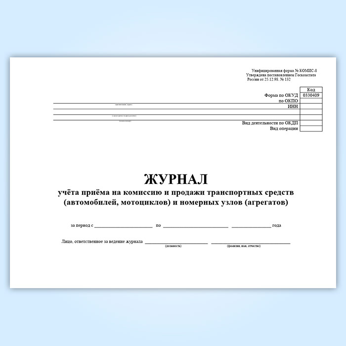 Журнал учета приема на комиссию и продажи транспортных средств (автомобилей, мотоциклов) и номерных узлов (агрегатов) (форма № КОМИС-8) в Твери купить