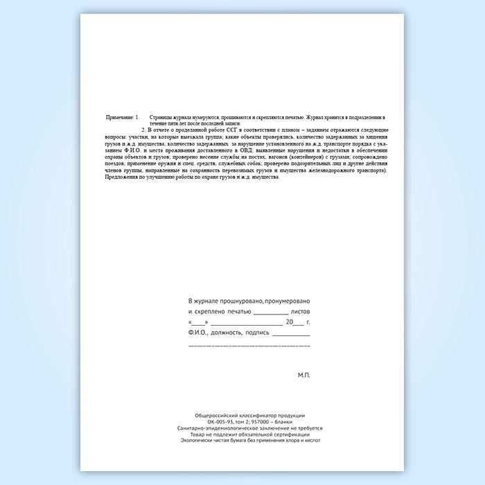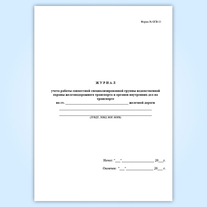 Журнал учета работы совместной специализированной группы ведомственной охраны железнодорожного транспорта и органов внутренних дел на транспорте (форма № ОГВ-15) в Твери купить