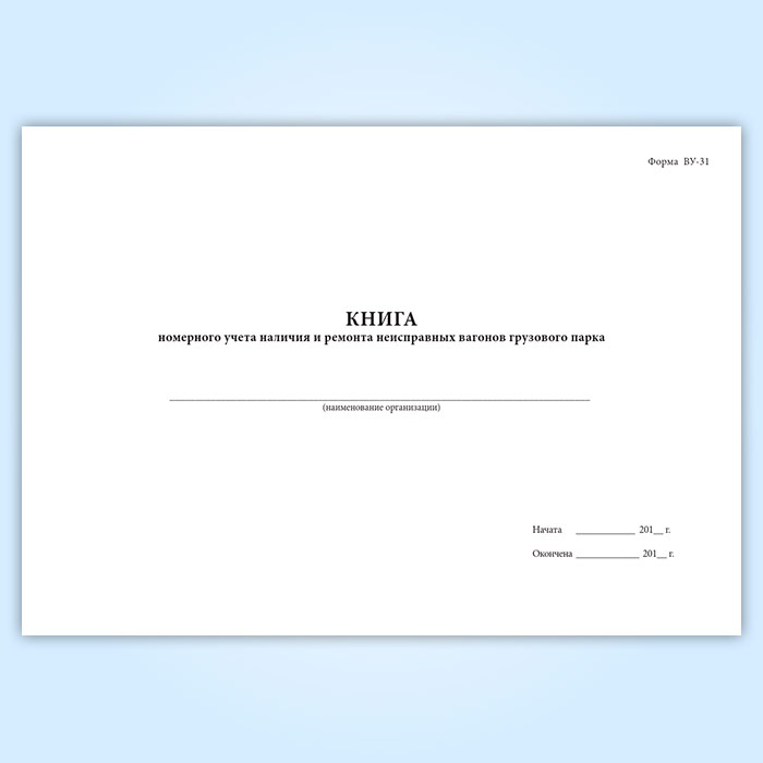 Книга номерного учета наличия и ремонта неисправных вагонов грузового парка ВУ-31 в Твери купить