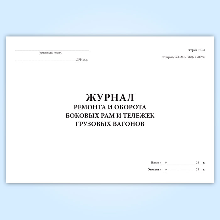 Журнал ремонта и оборота боковых рам и тележек грузовых вагонов (форма ВУ-38) в Твери купить