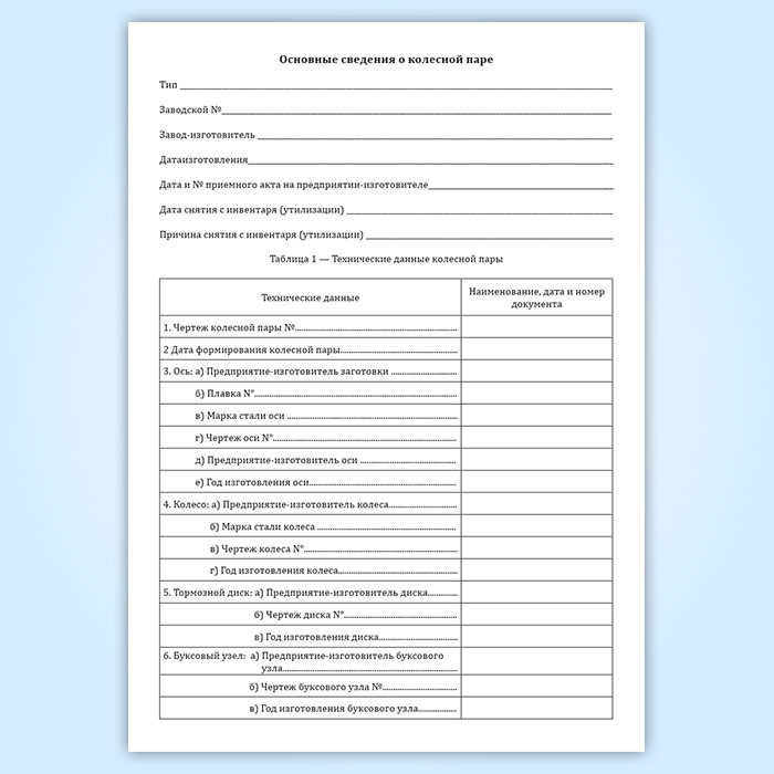 Паспорт на колесную пару в Твери купить
