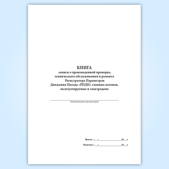 Книга записи о произведенной проверке, технического обслуживания и ремонта Регистратора Параметров Движения Поезда «РПДП» главных вагонов, эксплуатируемых в электродепо в Твери купить