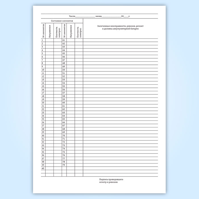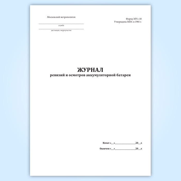 Журнал ревизий и осмотров аккумуляторной батареи (форма МУэ-18) в Твери купить