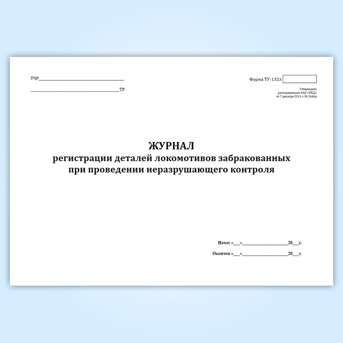 Журнал регистрации деталей локомотивов, забракованных при проведении неразрушающего контроля (форма ТУ-132л) в Твери купить