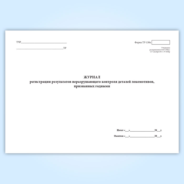 Журнал регистрации результатов неразрушающего контроля деталей локомотивов, признанных годными (форма ТУ-138л) в Твери купить